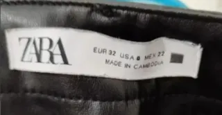 Pantalón de efecto piel de Zara. - Cintura elástica con cordón. - Bolsillos laterales. - Diseño de corte recto.