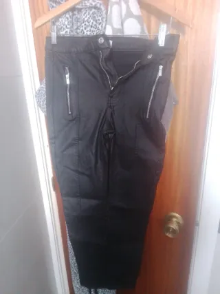 Pantalón de efecto piel en color negro. - Cintura con trabillas. - Cierre de botón y cremallera. - Bolsillos delanteros y traseros. Aunque es tallaL talla de menos pir eso pongo 38