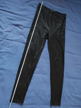 Pantalón tipo legging, talla M, de Bershka. Color negro. Tejido muy elástico y ajustado, con acabado efecto brillo. Material 🏷️ – Recubrimiento: 100 % poliuretano – Tejido base: 92 % poliéster, 8 % elastano 📌 Estado: los he usado muy poco. Están en buen estado general, mantienen bien la forma y la elasticidad. Tienen un pequeño descosido, que muestro claramente en la última foto. 🛍️ Si te llevas 5 o más artículos, tienes 20% de descuento! 📦 Entregas rápidas (24 y 48h). 📩 Pregunta lo que necesites.