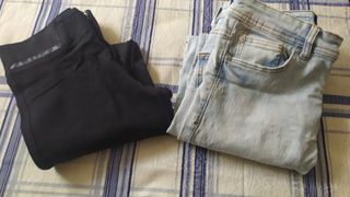 Nuevos, en color marrón oscuro, de efecto piel encerada con un diseño moderno. Son elásticos lo que los hace muy cómodos. - Hace buena figura por el tipo de bolsillos.