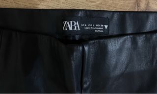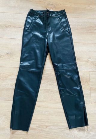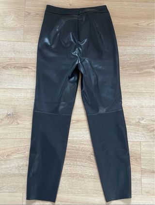 Pantalón de efecto piel de Zara. - Diseño de cintura alta. - Bolsillos traseros. - Cremallera lateral.