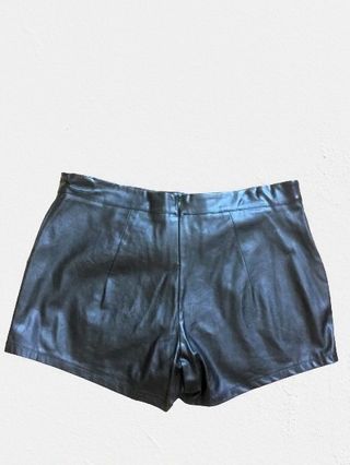Pantalones cortos de efecto piel en color negro. - Cintura con trabillas para cinturón. - Cierre de botón y cremallera. - Bolsillos delanteros.