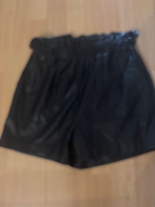Pantalón corto H&M de efecto piel. Tipo cuero negro. Nuevo. 100% Poliéster. - Diseño moderno y versátil. - Cintura alta.