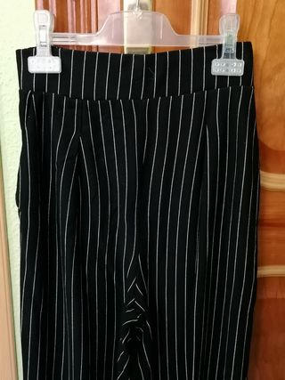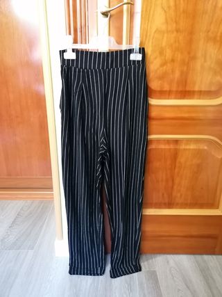 Pantalón Stradivarius de vestir, negro con rayas blancas Talla M, con bolsillos y goma elástica a la cintura Como nuevo Si te llevas tres varias prendas habrá REBAJA ¡Cualquier duda preguntad sin compromiso!