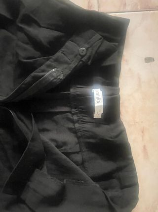 Pantalones negros de vestir con un diseño elegante. - Cintura alta con trabillas, pone talla 40, pero es muy estrecho de cintura, una talla 38 - Pinzas delanteras. - Dobladillo en los bajos.
