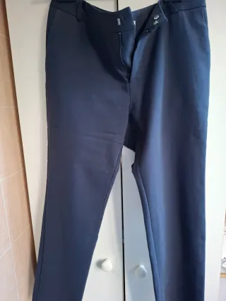 Bonitos pantalones de la marca Zara. Son de color azul marino y estan en buen estado. - Pack de 2 pantalones. - Color azul marino oscuro. - Tejido liso y tipo pinza - Talla 42