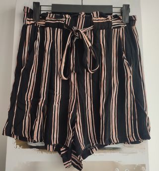 Pantalones de vestir con un diseño de rayas verticales. - Cintura alta con cinturón anudado. - Bolsillos laterales. En tonos negross y marrón super combinable Diseño italiano, quedab sueltos, súper comodos! Talla s, amplia, vale para m