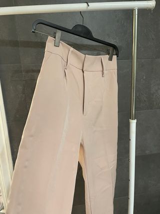 Pantalones de vestir de Zara en color rosa. Son de talle alto y corte ancho. - Cierre con cremallera y botón. - Dos bolsillos laterales. - Pinzas delanteras.