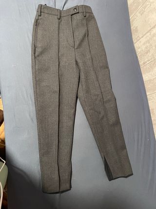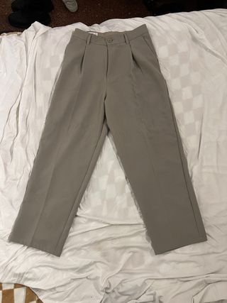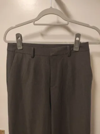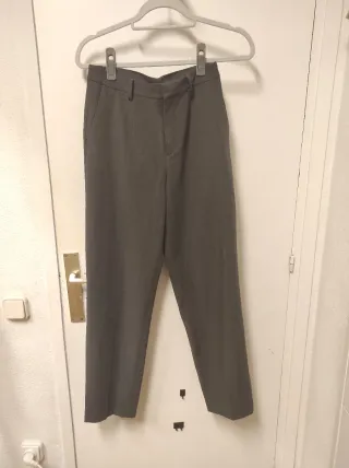 Pantalones de vestir de la marca Zara en color gris. Tienen un corte recto y pinzas delanteras. - Talla M. - Color gris. - Pinzas delanteras.
