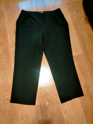 Pantalón de vestir para señora, muy cómodo y versátil. Perfecto para uso diario o para ocasiones formales (según se combine). - Talla L (equiv. 40-42) - Cintura elástica - Corte recto, favorecedor - Tejido agradable y fácil de combinar En muy buen estado. Ideal como básico práctico para cualquier armario. Muy llevable durante las temporadas de otoño, primavera y verano.