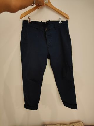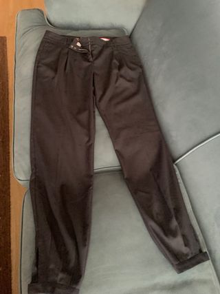 pantalon con pinzas y ajustado al tobillo con corchet de muy buena calidad y super estiloso . equivale a una talla M española ! esta impecable . azul marino