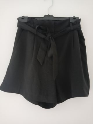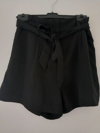 Pantalones cortos negros de H&M, estilo paperbag. Son elegantes y cómodos. - Tienen una cintura alta con cinturón. - Son de tiro alto. - Están en perfecto estado.