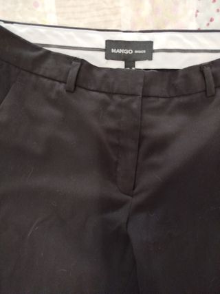 Pantalones negros de vestir de la marca Mango. - Corte recto. - Cierre con cremallera y botón. - Dos bolsillos laterales.