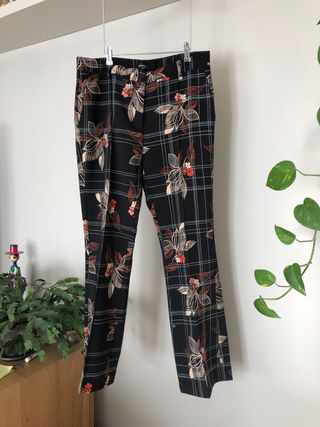 Pantalón de vestir de Zara con un discreto estampado. - Diseño de cuadros pequeños. - Cintura con trabillas para cinturón. - Cierre de botón y cremallera.