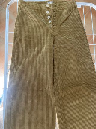 Pantalón de pana de corte ancho con cierre de botones. - Tejido de pana. - Diseño de pierna ancha. - Cierre frontal con botones. - Pinzas en la parte de atras