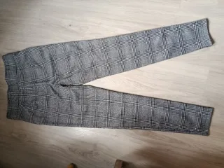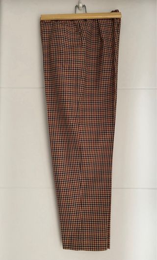 Pantalón de vestir con un elegante estampado de cuadros. - Cintura elástica para mayor comodidad. - Bolsillos laterales prácticos. - No tiene la etiqueta porque picaba mucho, pero son del Lefties. - Largo: 89 cm - Cintura: 68 cm pero con el elástico da unos 8 cm más - Muy cómodos.