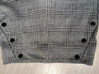 Pantalón de vestir con un diseño de cuadros clásico. - Patrón de cuadros en tonos grises y negros. - Detalle de botones decorativos en el lateral.