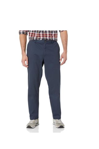 Nuevo!! Fotos reales al final Pantalón de vestir elástico con corte clásico. - Talla 34W/30L. Equivale a una 46 en España. Medidas reales: 46.5 cm Cintura 60 cm Cadera - Color azul Marino. Tejido elástico antiarrugas. Proporciona un look limpio y moderno, perfecto para cualquier ocasión. Bragueta con cremallera, cierre delantero de gancho y presilla con cierre interior secundario de botón, bolsillos delanteros oblicuos y bolsillos traseros con botones. Cintura con cortina interior para un look entallado. E13aW