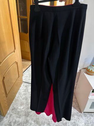 Pantalón negro de vestir elegante y versátil, con mucha caída. Cierre lateral con cremallera y botón. Muy buen estado. - Corte recto. - Tejido de calidad (crepe).