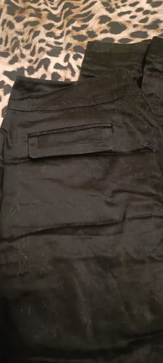 Tiene dos pequeñas manchitas, prácticamente imperceptibles a primera vista. Tengo otro pantalón del mismo tipo y talla en marrón. Largo 90cm, cintura 38cm. Si tiene cualquier pregunta, póngase en contacto e intentaré solucionarla.