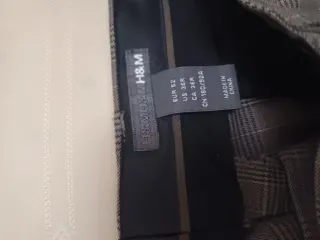 Pantalones de vestir H&M con un elegante diseño a cuadros grises. Son cómodos y versátiles. - Diseño a cuadros. - Cierre de botón y cremallera. - Bolsillos funcionales.