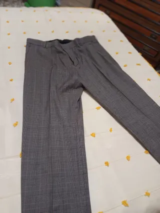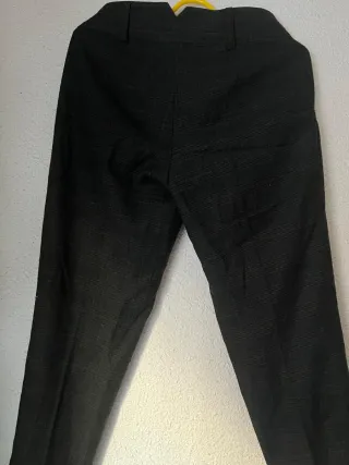 Pantalones largos con un diseño de cuadros sutil. - Patrón de cuadros en tonos grises y negros. - Corte clásico y elegante. Defecto: le falta un botón, foto adjunta, por eso rebajo precio.
