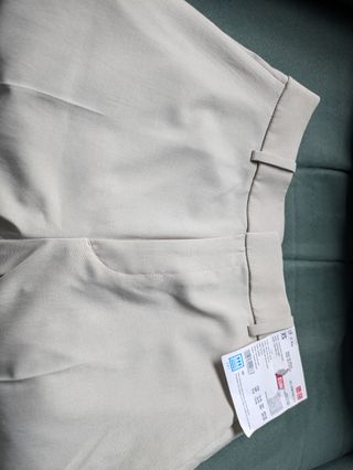 Pantalón de vestir Uniqlo. Indica color beige aunque tiende a gris. - Corte recto - Pierna ancha - Talla XS - Tela fina