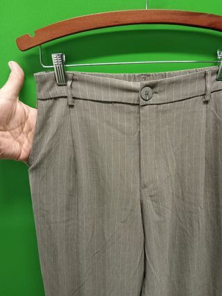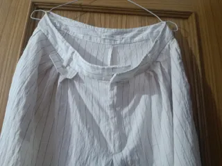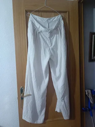 Pantalón de lino con un diseño de rayas verticales.dive taya 42 pero es una 46 Cintura 44 cadera 64 es ancho x qué es de pinzas, largo de pantalón 110 total - Material: Lino. - Diseño: Rayas verticales.