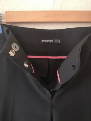Pantalón de vestir de la marca Atmosphere. - Cierre con botón y cremallera. - Detalle de pespunte rosa en el interior de la cinturilla. - Dos botones metálicos en la parte frontal superior.