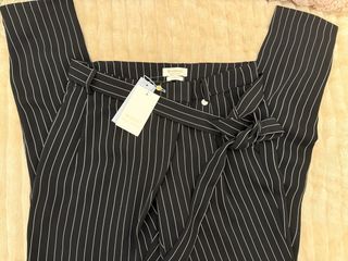 Precio original 110€. Tela muy suave. Pantalón de vestir con un diseño de rayas verticales. - Cintura con cinturón anudado. - Cierre de botón y cremallera. - Bolsillos laterales.
