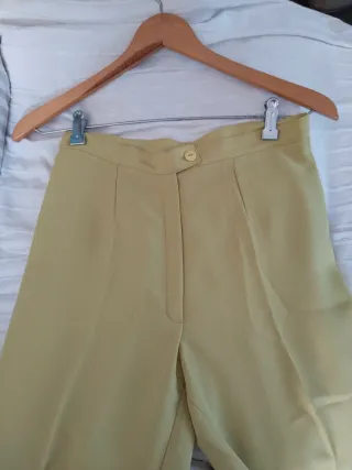 Pantalón de vestir de la marca Zara, con un vibrante color amarillo y un diseño clásico de pinzas. Ideal para añadir un toque de color a tu vestuario. - Diseño de pinzas. - Cierre de botón y cremallera. - Bolsillos delanteros y traseros.