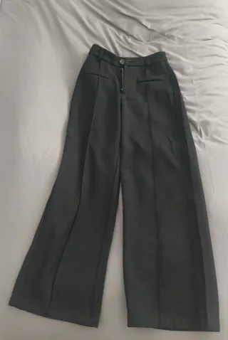 Pantalón de pinzas en color gris. Está en muy buen estado. - Corte amplio y cómodo. - Diseño de pinzas en la cintura. - Tejido de calidad. - Material: 64% poliéster 34% viscosa 2% elastano.