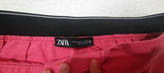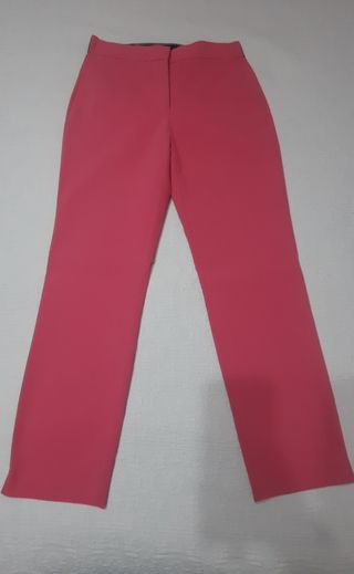 Pantalon de pinzas,raya diplomática en color rosa, con bolsillos y detalle botones marineros. Stradivarius talla 34,poco uso en perfecto estado
