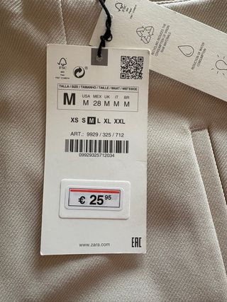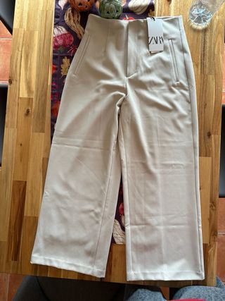 Pantalón de tiro alto de la marca Zara. - Talla M. - Color beige.
