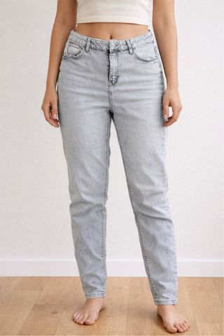 Pantalón vaquero de color gris. - Tejido de algodón. - Corte recto. - Cintura con trabillas para cinturón.