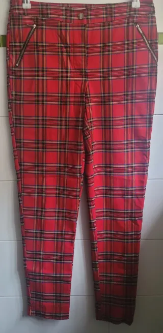 Pantalón largo con estampado de cuadros en tonos rojos. - Presenta un diseño moderno con cremalleras decorativas en los bolsillos. - Estampado de cuadros escoceses. - Cremalleras metálicas en los bolsillos delanteros. - Cierre de botón metálico y cremallera. - Piernas pitillo. - Tiro medio - Diseño a cuadros en tonos rojos. - Talla 40. - Estilo "British" - Cómodo y versátil. - Estado impecable. NUNCA FUE USADO #pantalón #pantalones #pantalonfemme #pantaloneslargo #acuadros #escoces #pantalonespitillo #pitillo #aestrenar #nuevoaestrenar #ropamujer #ropamujer40 #rojo #ropadeinvierno #ropabonita