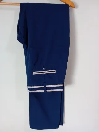 Pantalón pitillo de la marca Boboli en color azul. Presenta un diseño moderno y cómodo. - Detalle de dos líneas plateadas en el bajo. - Bolsillo trasero con botón. Hago envíos y descuentos por lote. Más artículos en mi perfil.