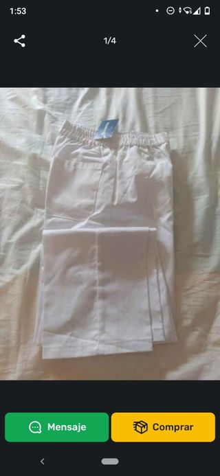 Pantalón de trabajo o uniforme en color blanco. - Cintura elástica. - Pierna recta. No me desplazo entrego en mano zona Carolinas altas no envío solo pago en efectivo no bizum