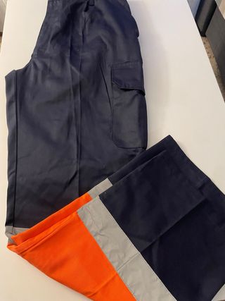 Pantalón de trabajo azul con detalles naranja