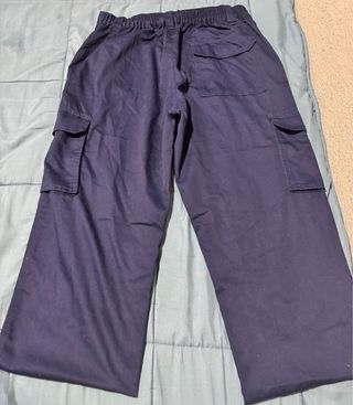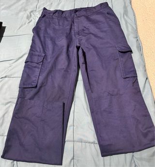Pantalón de trabajo de color azul, ideal para logística. - Diseño tipo cargo con múltiples bolsillos. - Cintura elástica para mayor comodidad. - Piernas amplias. -Talla 48