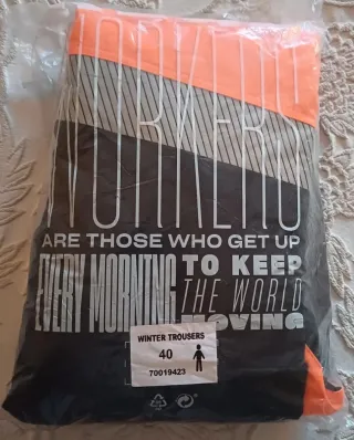 Pantalón de trabajo de invierno. Talla 40. KINGSMANN STARLIGHT. Bolsillos laterales. Reflectante gris y naranja en la parte inferior de la pierna y los bolsillos laterales. Totalmente acolchado. Nuevo con etiquetas, sin estrenar. Precio NO negociable.