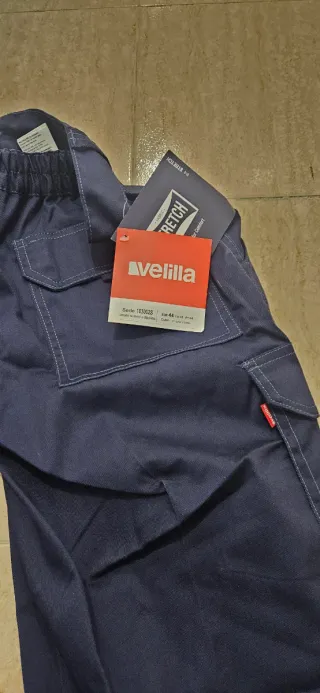 Pantalones de trabajo de la marca Velilla, talla 42. Cuentan con un diseño de stretch para mayor comodidad. 2 modelos, unos acortado el bajo 10cm pero sin estrenar Varias unidades disponibles - Serie 103002S. y 345 - Pantalón de stretch multiboisilos. - Color: azul marino.