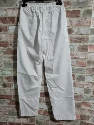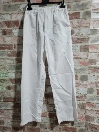 Pantalón de trabajo de color blanco, con un diseño cómodo y funcional. - Cintura elástica. - Dos bolsillos delanteros.