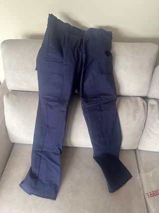 Pantalones de trabajo nuevos en color azul marino. Disponibles 2 unidades. - Cintura elástica. - Bolsillos cargo. - Etiqueta incluida. talla 40-42