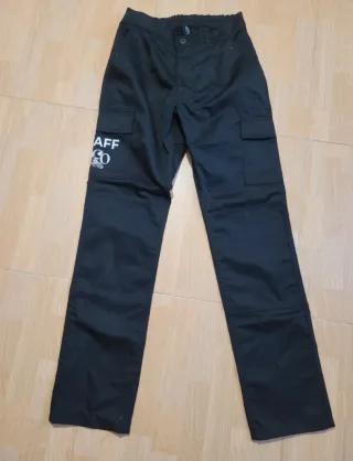 Pantalón de trabajo de color negro, con un diseño práctico y funcional. -Tejido de invierno. - Bolsillo cargo en el lateral. - Etiqueta con logo en el bolsillo. Uno de ellos tiene unas pequeñas manchas. 25 euros casa uno