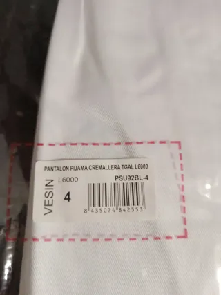Pantalón de trabajo de la marca VESIN en color blanco. Fabricado en poliéster y algodón. - Talla 4. Equivale a una 36/S - Lavar máximo 40° C. - No usar lejía.