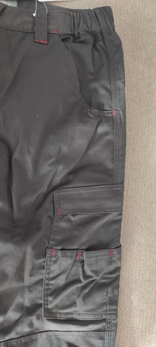 Pantalón de trabajo de corte recto y diseño funcional. - Cintura elástica para mayor comodidad. - Bolsillos cargo laterales. - Bolsillo de parche en la parte trasera. - Etiqueta de la marca en rojo.