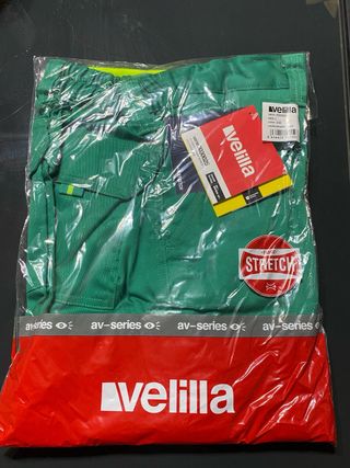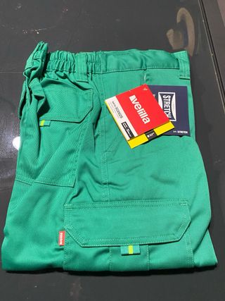 2 Pantalones de trabajo de la marca Velilla, talla 40. 1 pantalón de otra marca cintura elástica nuevo sin estrenar. - Diseño clásico y funcional. - Confeccionados en tejido resistente. - Bolsillos laterales y traseros.