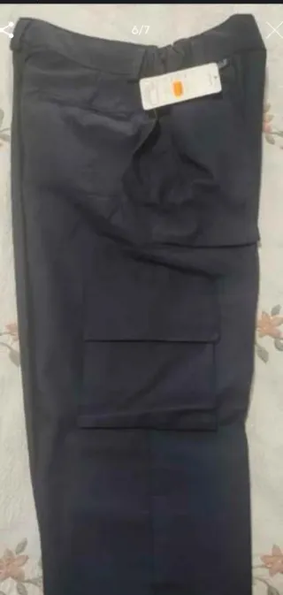 Pantalones cargo de color azul marino, ideales para el trabajo o el día a día. Son nuevos, con etiqueta. - Diseño cargo con múltiples bolsillos. - Corte recto y cómodo. - Tejido resistente.