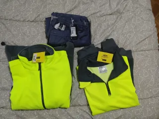 LOTE de ropa de trabajo de la marca Anbor, ideal para profesionales. Incluye un forro polar con cremallera y una sudadera de alta visibilidad y un pantalón. SE PUEDE VENDER POR SEPARADO TALLA L SIN ENTRENAR